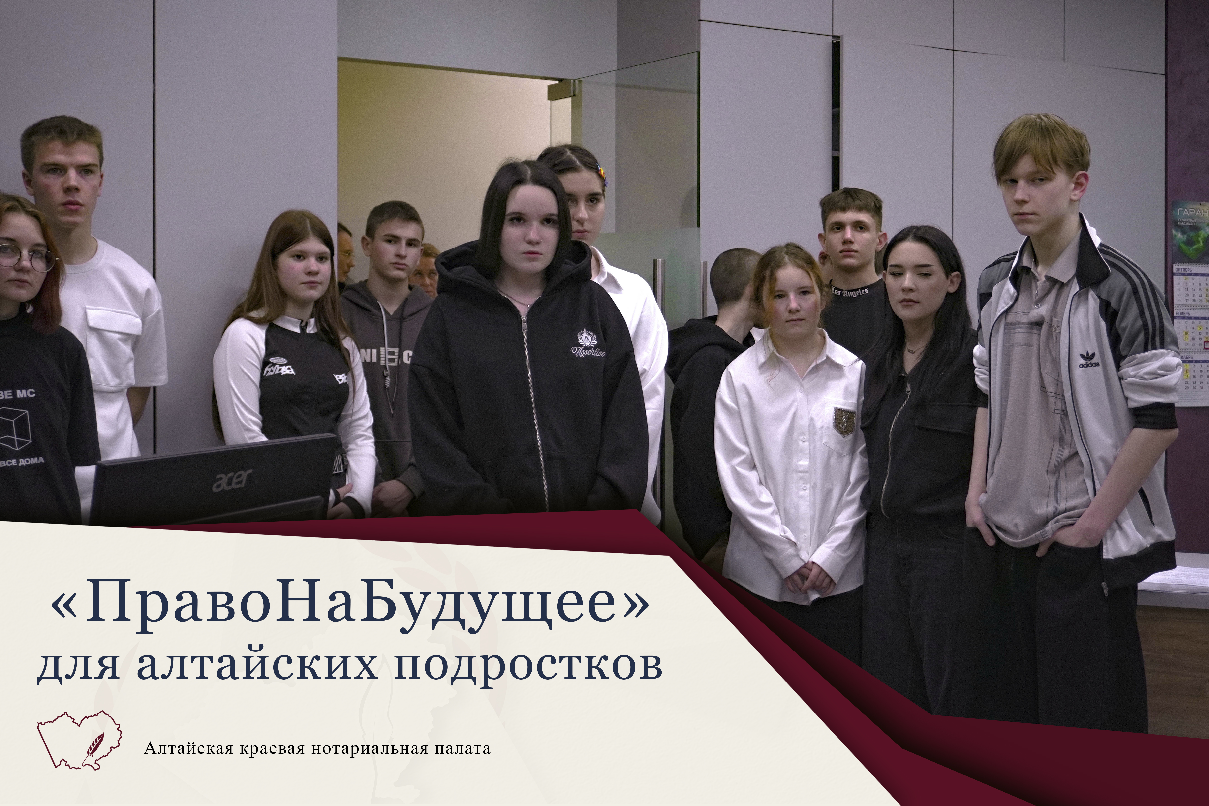 Алтайская краевая нотариальная палата приняла участие в всероссийской акции «ПравоНАБудущее», которая проходит в 20 регионах страны. Цель проекта — помочь подросткам из уязвимых категорий, в том числе детям, оставшимся без попечения родителей, получить представление о разных профессиях и сделать осознанный выбор своего пути.